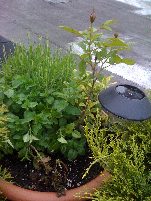 A little death and a whole lot of new life on our roof garden. Tune in next week when we’ll see if that last tiny green sprout on the base of the basil seedling will turn into anything. Or, will I decide to declare the basil dead and start over. Will the oregano’s relentless domination of the pot continue? And just when will that heirloom rose bloom?