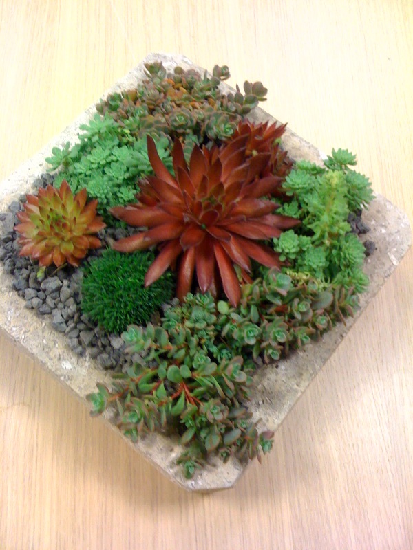 I spent Sunday morning nursing my sad succulents. Then, I went to the International Contemporary Furniture Fair in the afternoon. The very first thing I saw were these stunning succulent garden centerpieces in the press room. They are from Brooklyn’s own Alive Structures. The containers are hand made in New York from recycled shredded paper and mixed with cement.