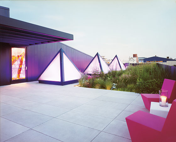 I usually think of wild, dense plantings as looking oldy-worldy, but check out this punchy modern Brooklyn roof garden.  This garden is part of Flavor Paper’s new live-work space. Head to New York magazine for more (via Apartment Therapy).