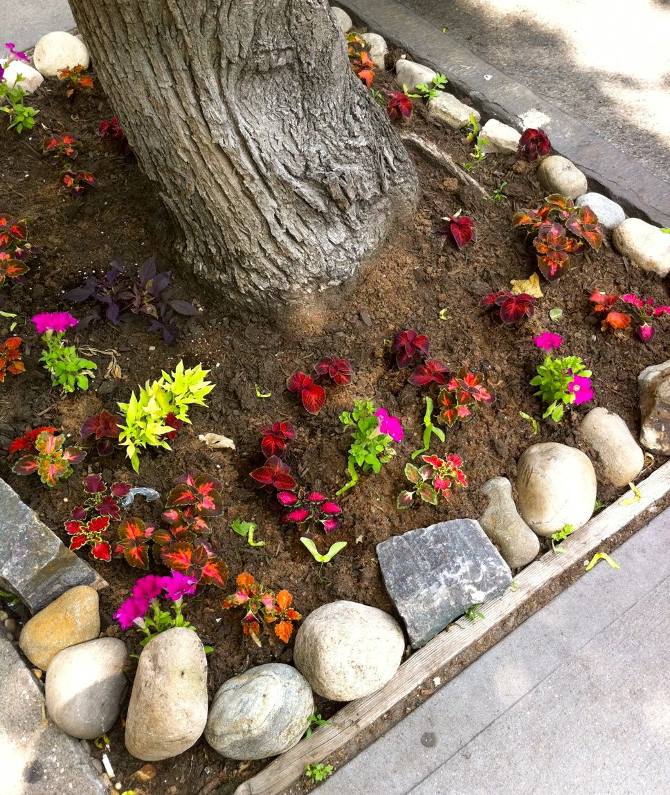 How did your garden grow over the Memorial Day weekend? We got a ticked a pile of gardening chores off the list — but we’re still hunting for some stones for our tree pit gardens. I think a few stones give the tree pits a more finished look and they fill up some spots that don’t have plants. (I really like the stone border for this tree pit garden, but we won’t use this many since our tree pit is already protected by a new metal fence!)