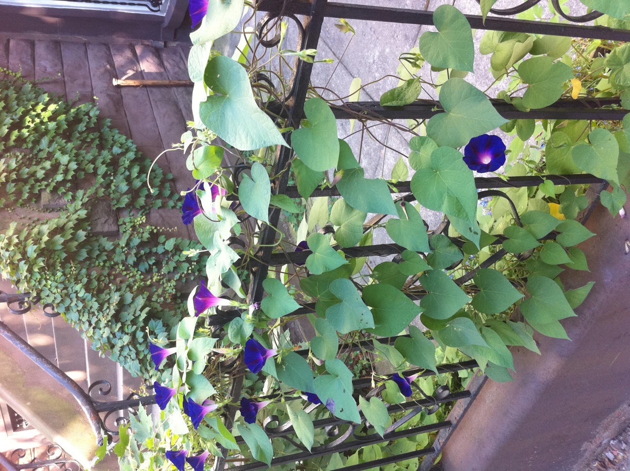 Besides watering, we we do have one other way to keep our gardening going in the heat: succulents! Sempervivum (hens ‘n chicks), Portulaca grandiflora (moss rose) like a dry heat, so we sure have a spot for them right between our two Adirondack chairs on a small table right in the sun. I am surprised how few NYC gardeners plant sepmervivum and portulaca. Maybe that’s because these plants don’t look very fun in the garden center, when compared to annuals already in bloom.