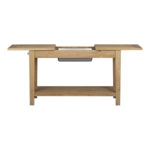 The Regatta Console ($949) is beautiful – a beautiful, teak budget buster. With mortise and tenon construction, this might be the sturdiest of the bunch. It also has the most polished look. At only 30″ high, it wouldn’t work well as a bar. We like that this console, like the less expensive Walmart option, has the dry sink.